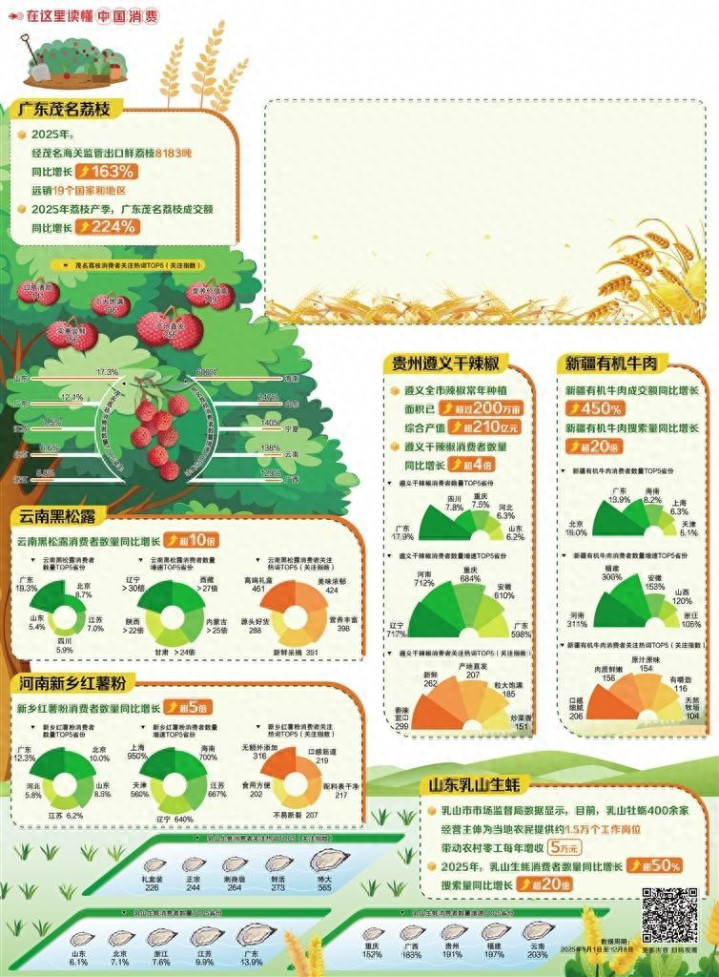 当前,越来越多“隐藏款”被“挖”出来,首先反映的是国内消费市场的差异化特征与巨大的潜力。消费者与市场的互动更加频繁,市场在满足更多细分需求的同时,一些特色农产品得到曝光,慢慢从田间地头走到消费者中间。其次,各地区各部门鼓励区域公共品牌发展,包括茂名荔枝、五常大米、柳州螺蛳粉等在内的品牌,借助庞大的销售网络、成熟的营销渠道,不断扩大销量。再次,随着直播电商快速发展,很多特色产业搭上了直播的快车,实现了小规模的供需对接,激发了特色农产品贸易活力。