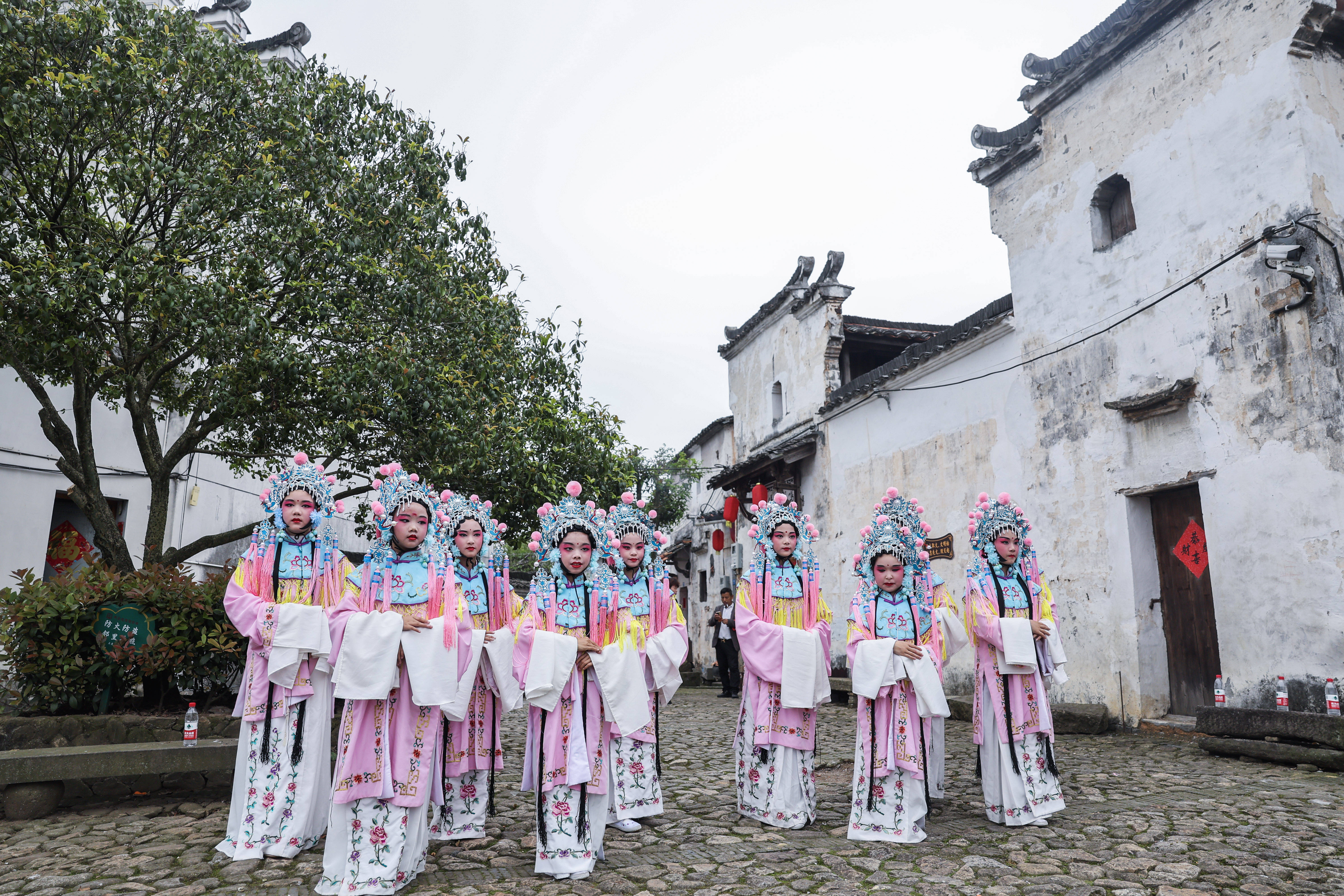 图为“新叶三月三”特色民俗非遗展演中的新叶昆曲表演团队。新华社记者 徐昱 摄大慈岩镇党委委员蒋宇涵说:“我们不仅不会丢了传统村落的根,还要搭好现代文化活动的台,通过完善产业链,把传统村落保护好、传承好、利用好。”