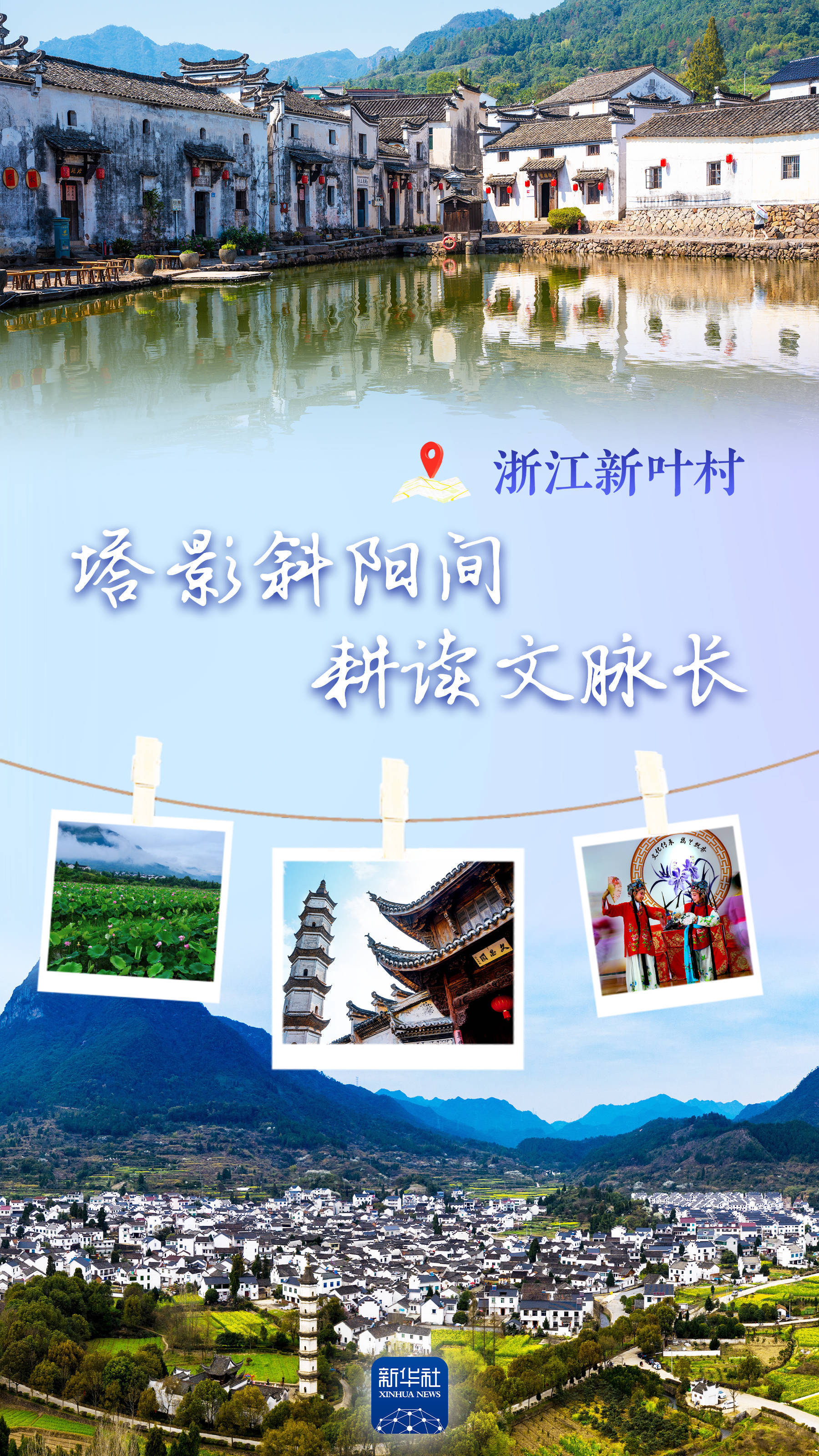 新华社杭州4月23日电(记者郑可意 刘澈)走进浙江建德市大慈岩镇新叶村,恍如步入一幅素朴安宁的农耕画卷:近有浅水田铺展,夏日荷香袅袅;远有青山为屏,四季树木环绕;茂林掩映间,一座秀丽的白塔挺立,这便是古村的地标抟云塔。